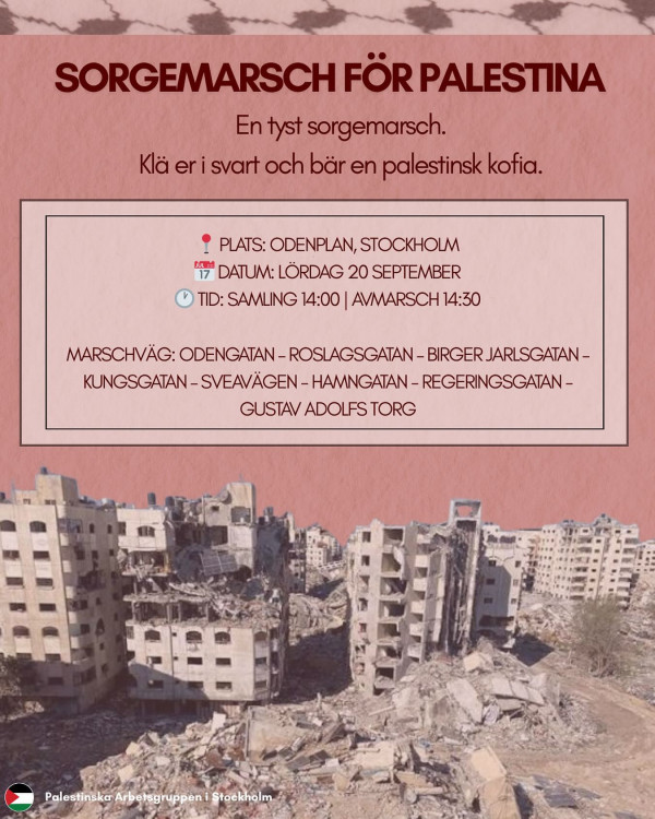 Lördag 20 september 14:00. Odenplan, Stockholm. Avmarsch 14:30 mot Gustav Adolfs torg.