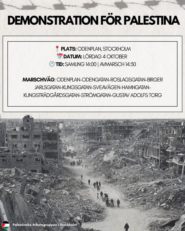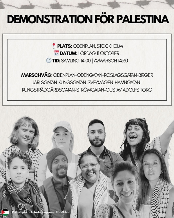 Lördag 11 oktober 14:00. Odenplan, Stockholm. Avmarsch 14:30 mot Gustav Adolfs torg.
