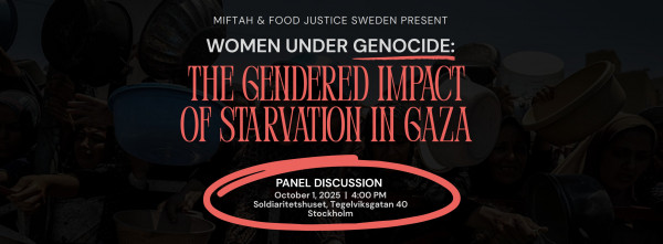 Årsmöte för Maträttvisa (Food Justice Sweden) (16:00) och en eftermiddag med film, samtal och engagemang kring den humanitära katastrofen i Gaza.