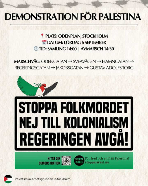 Har du tips på evenemang med Palestinaanknytning i Stockholms län? Hör av dig till oss: [email protected]